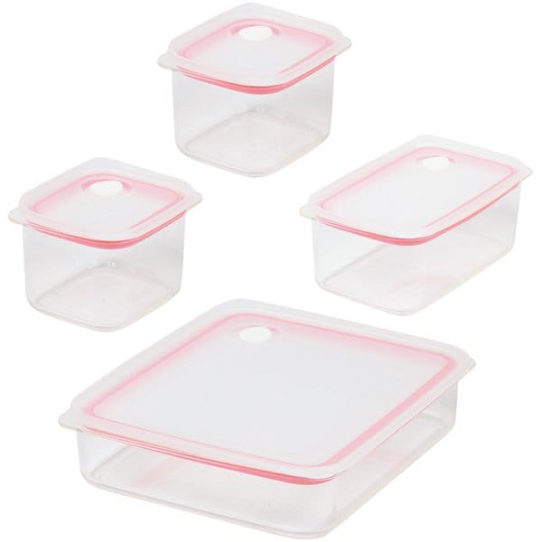 • リバティーコーポレーション 保存容器 4点セット 浅型 深型 密閉 電子レンジ 食洗機対応 ピンク LD-696