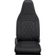 トラック・商用車専用新開発のBioPVC生地を使用し、耐久性とデザイン性の両立を実現! ダイナミックな縦型のシングルダイヤキルトステッチを背もたれと座面センター部分に採用。車内の雰囲気を一新したい方やデザイン性重視の方におすすめのアイテムです。