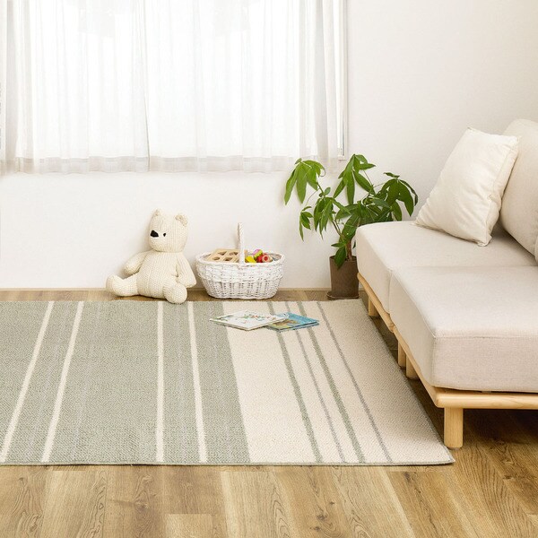 天然素材のやさしさと化繊の快適性を兼ね備えた、日本製の綿混タフトラグ。ふんわりとやわらかな肌触りで、足元に心地よさを与えるだけでなく、防ダニ・抗菌機能付きで、お子さまやペットと暮らすご家庭にもおすすめです。リビングやダイニング、寝室など、どんな場所にもなじむシンプルなデザインで、インテリアにさりげないアクセントをプラスしたい方にもぴったりの1枚です。