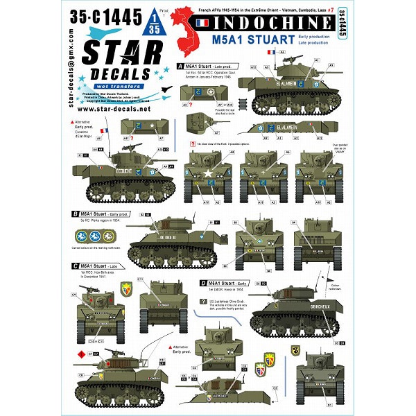 スターデカール STAR DECALS SD35-C1445 1/35 デカール 現用 フランス インドシナ戦争 #7 M5A1スチュアート軽戦車 初期/後期生産車 の 商品概要