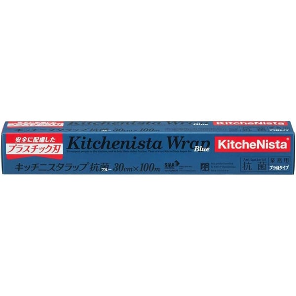 業務用 抗菌 キッチニスタラップ ブルー プラ刃 30cm×100m 電子レンジ・冷凍OK 日本製