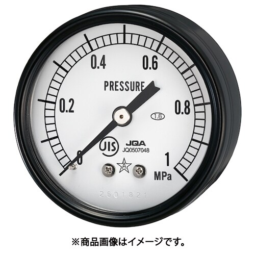 ケース及びカバーは電着塗装で耐食性に優れています。圧力計の3大流体(エア・油・水)のどれにでも使用できます。JIS B 7505-1規格品です。