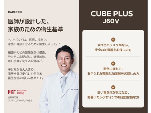 ハイブリッド式加湿器 CAREPOD CUBE PLUS(ケアポッド キューブプラス) 木造8.5畳/鉄筋14畳まで タンク4.2L 除菌 湿度調節 J60V