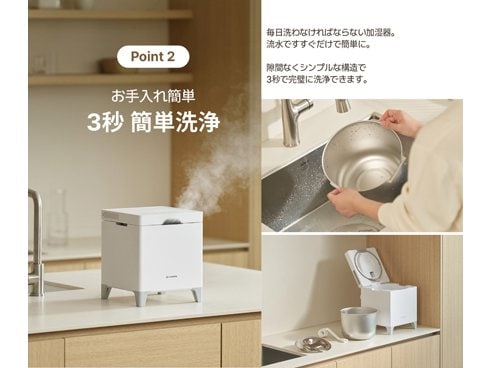 より安全で便利な自動除菌、自動湿度調節、お子様も触れて安全な低温加熱技術で愛する家族の健康を簡単にケアできます。