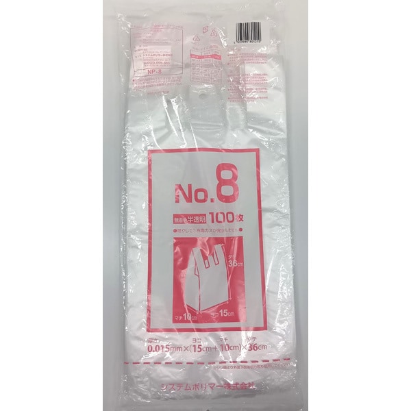 • システムポリマー レジ袋NO.8 無着色 半透明 100枚入 NP-8