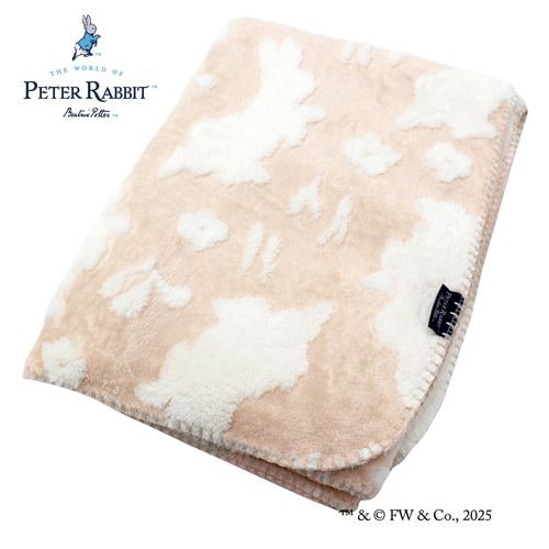ふんわりあったかひざ掛け ピーターラビット(TM) フランネル ジャガード織り 裏面シープボア ベージュ 約70×100cm PRQK1231-96