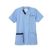 カットが入った衿、ポケットのデザインが新しさを感じさせてくれる男女兼用スクラブ。