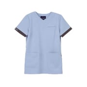 袖口の配色パーツがアイキャッチになるレディススクラブ。
