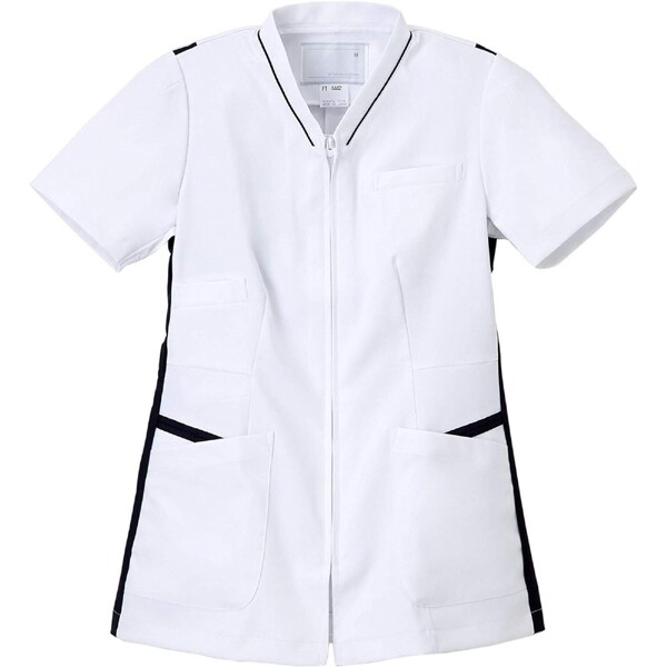 プロフェッショナルを感じさせる衿元とネイビーとの配色がより信頼感を与えます。●左胸(PHSポケット付き)、両腰2重ポケット●右胸下PHSポケット