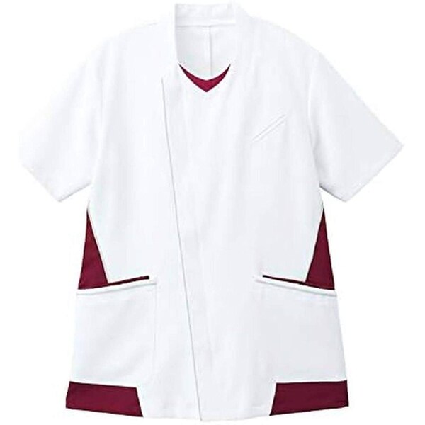 ●白ベースにグレーのアクセントカラーを配したすっきりとしたノーカラーの男性用ジャケット。
