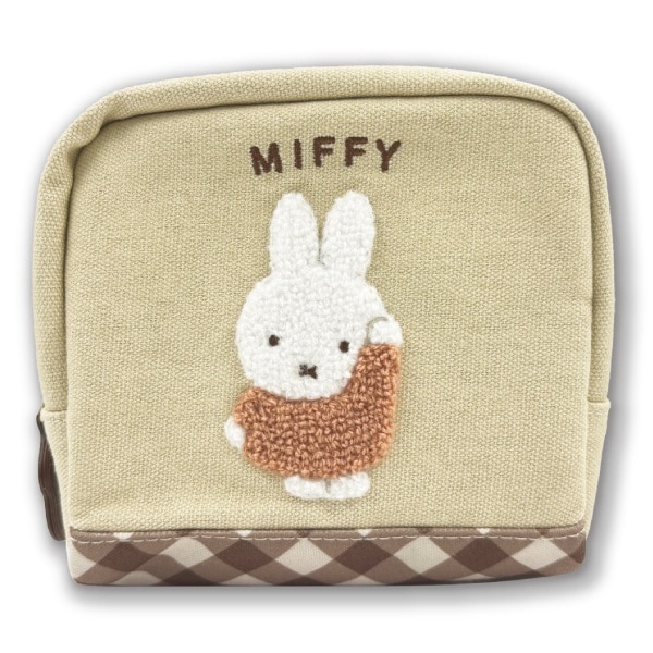 DBM-3114 Dick Bruna ボックスポーチ ダイアゴナルチェック ミッフィー / ベージュ