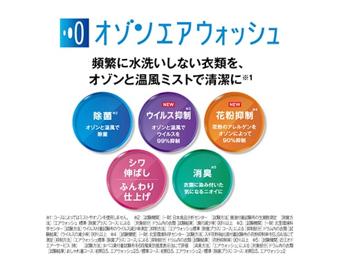 • オゾンエアウォッシュで頻繁に水洗いしない衣類を、オゾンと温風ミストで清潔に