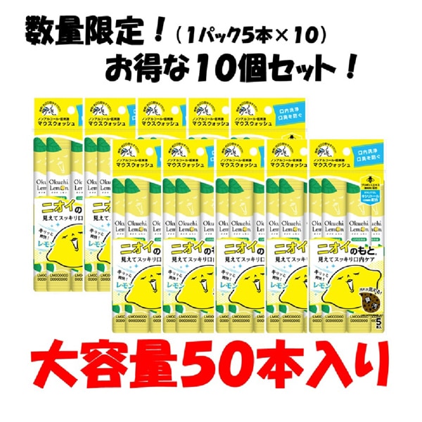 大特価!オクチレモン50本のお得なセット「オクチレモン」は、お口の中の汚れ、磨き残しを除去し、口臭の原因の一つであるタンパク質を固めて洗い流す口内洗浄液です。ブラッシングでは届かない口腔内を洗浄!外出先でも便利&衛生的なスティックの個包装です。