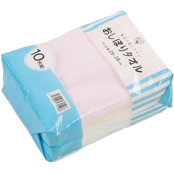 薄手だから絞りやすくて乾きやすいおしぼりタオル。何枚あっても重宝する、洗い換えにも便利な10枚組です。