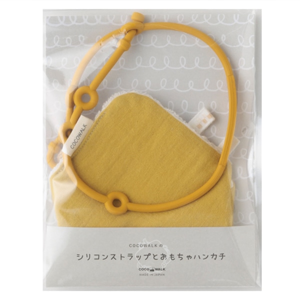 ベビー ニギニギハンカチ シリコンストラップ付き おもちゃ 落下防止 日本製 ベビーカー やさしいガーゼ イエロー R-250803YE