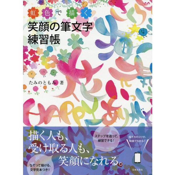 ペンや水筆を使って、虹色の筆文字を描くための本です。笑顔にちなんだイラストの描き方や、笑顔との組み合わせかたをマスターして、大切な人への気持ちを届けましょう。
