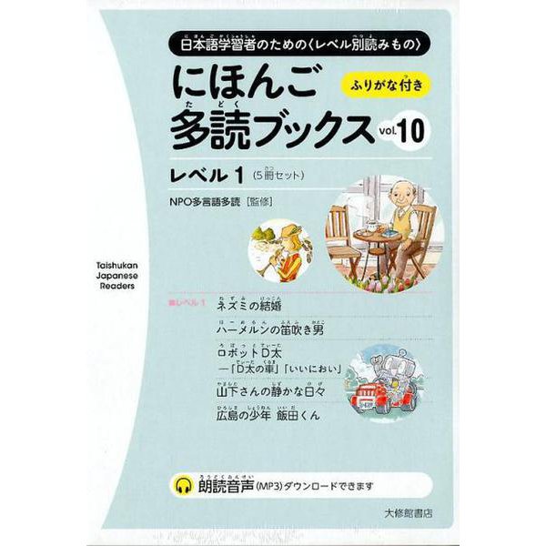日本語学習者のためのレベル別読みもの最新刊。vol.10は昔話、本当の話、創作などが入り、少し長い話や縦書きに慣れる内容