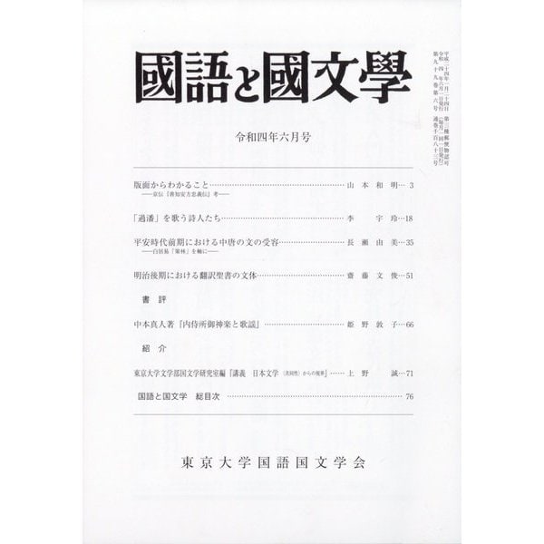 • 国語と国文学 2022年 06月号 [雑誌]