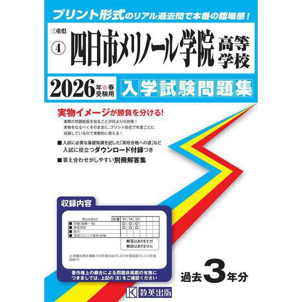 四日市メリノール学院高等学校 2026年春受験用(三重県私立高等学校入学試験問題集 4) の 商品概要